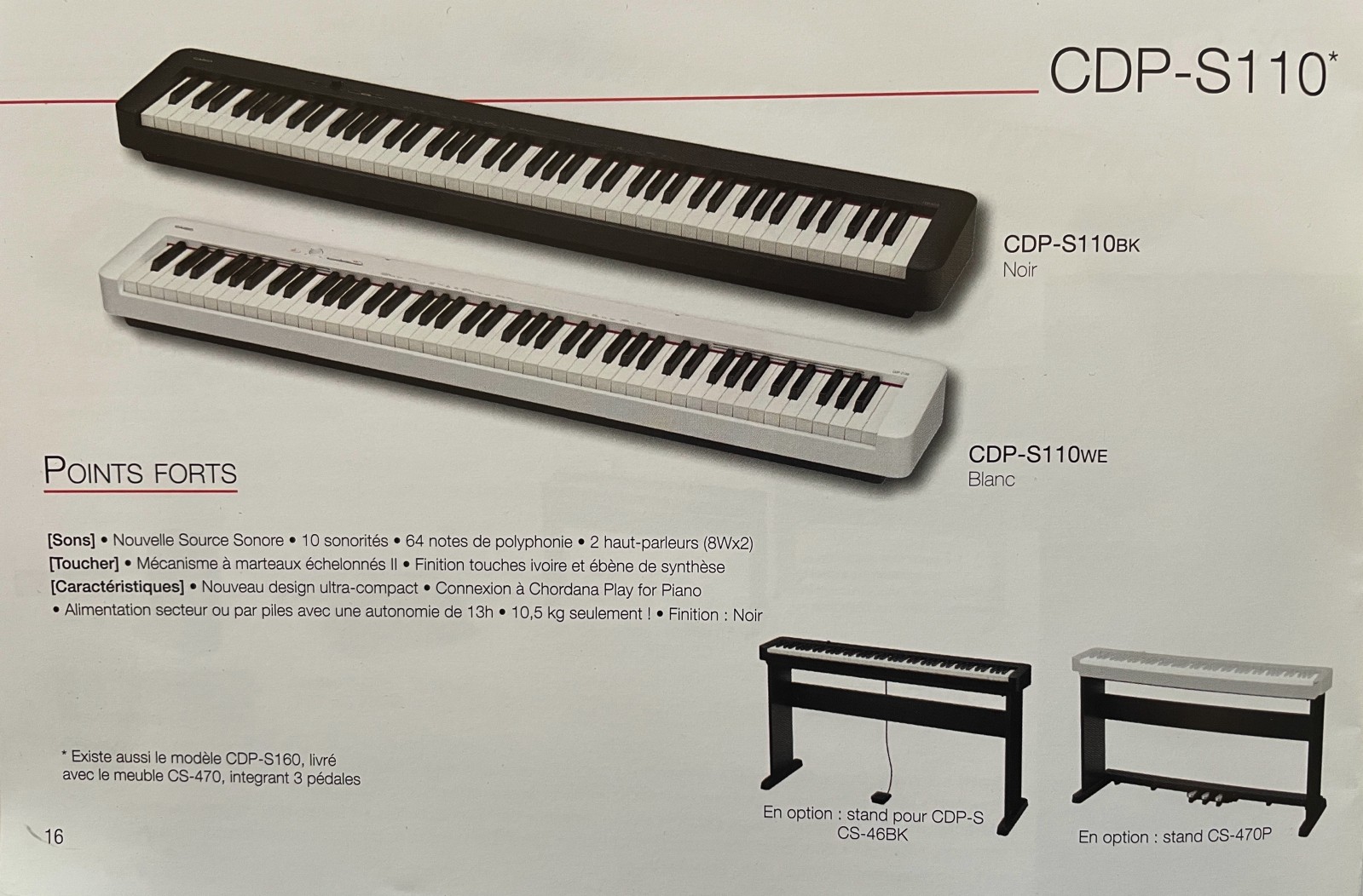 Le Piano numérique Casio cdp-s110 sur Rennes et Fougères est disponible en noir ou blanc dans notre magasin près de rennes au porte de la magestueuse forêt de brocéliande.