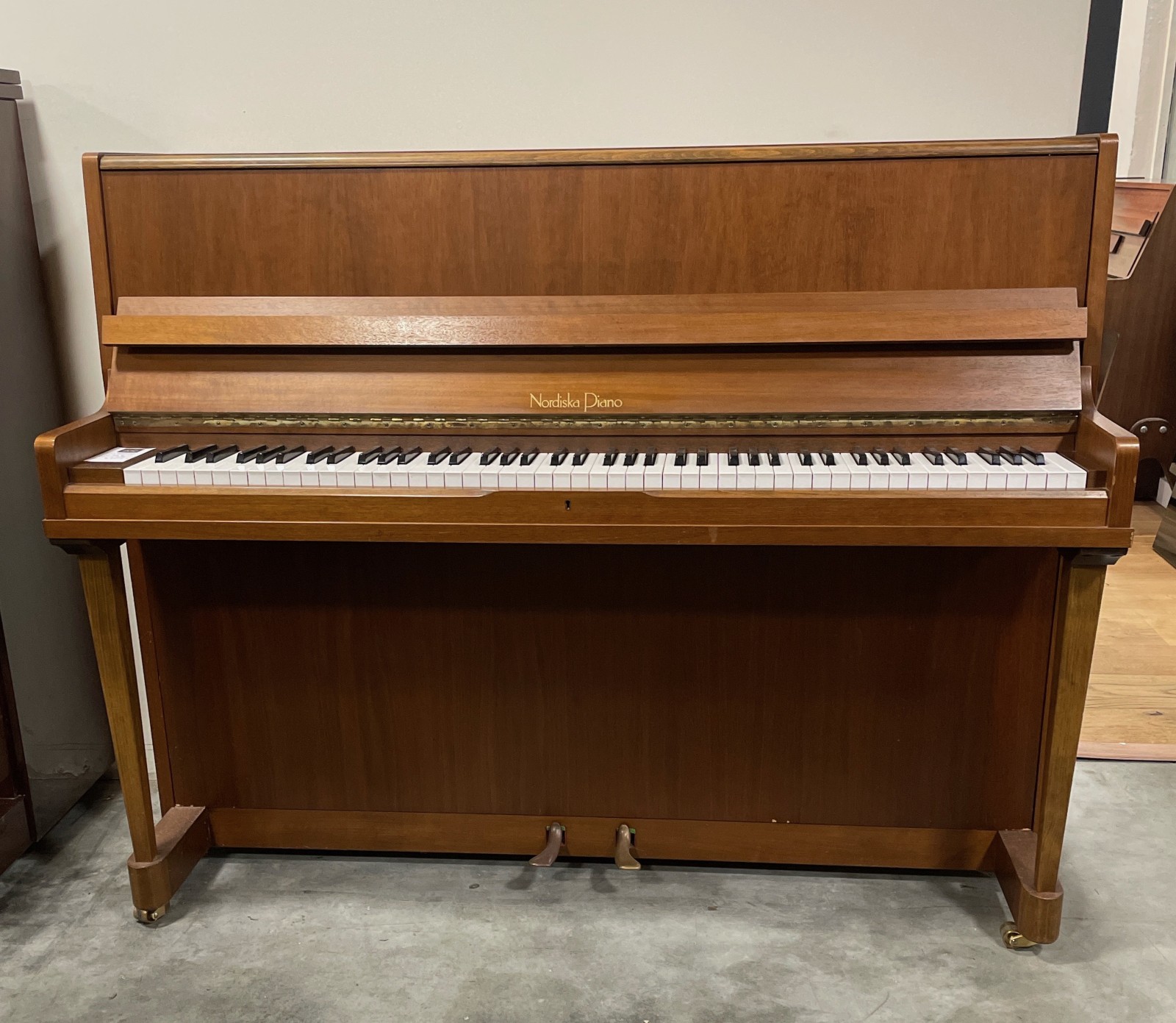 Le magasin Pianos Pianos, Brocéliande, vous propose un piano d’occasion européen, Nordiska en Ille-et-Vilaine. Le fabricant suédois de pianos Nordiska Piano AB était jusqu'en 1988 le plus grand fabricant de pianos de scandinavie. Elle a été fondée à Stockholm en 1922. Tout comme la plupart des fabricants européens, Nordiska n'a pas été en mesure de suivre le rythme des fabricants asiatiques, beaucoup moins chers, et a mis fin à sa production en Suède vers 1988.